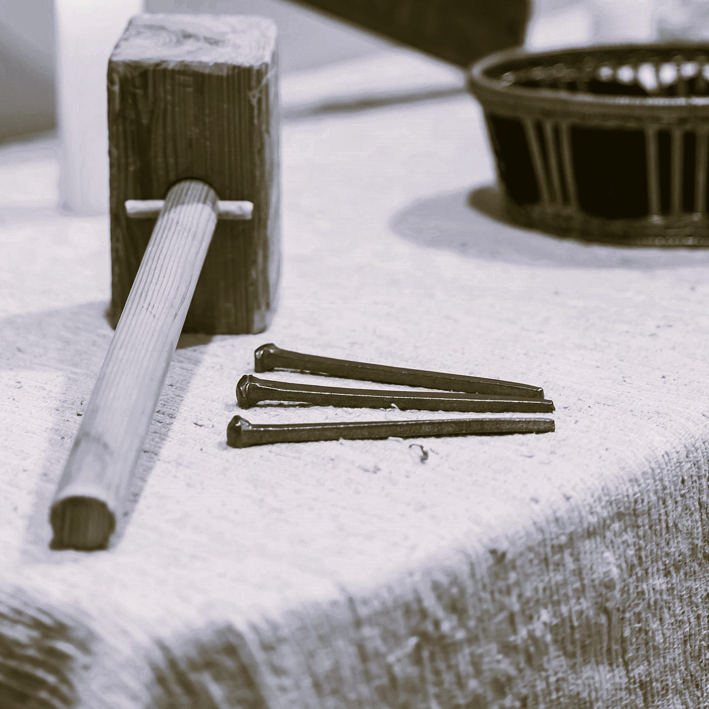 A fiatal ács ettől igencsak gondolkodóba esett. Izgatottságában a kútnál hagyta a korsóit, és futásnak eredt. Hazaérve azonnal előkereste a ládát, kivette belőle, és az asztalra tette a rongyokat. Amikor azonban kibontotta őket, elképedt. A vasszegek nyomtalanul eltűntek. Az ács ekkor becsukta a szemeit, és újra látta maga előtt a kereszten függő férfi tekintetét: nem könnyezett többé, csak szelíden mosolygott.